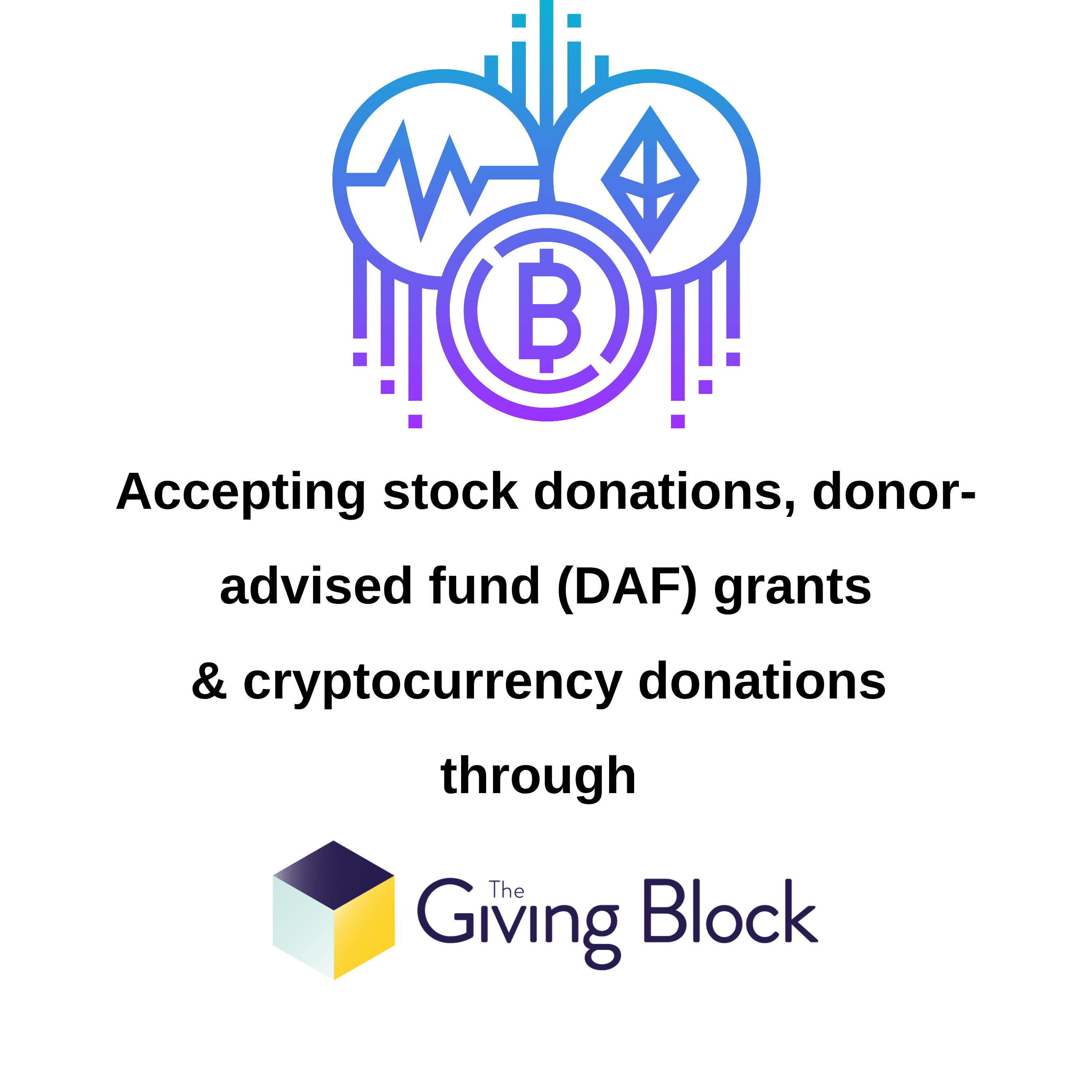 To donate by DAF, stock, or cryptocurrency, click the button below. You will be directed to our form for making your non-taxable donation.