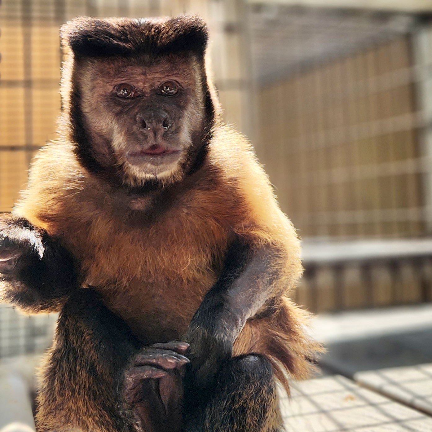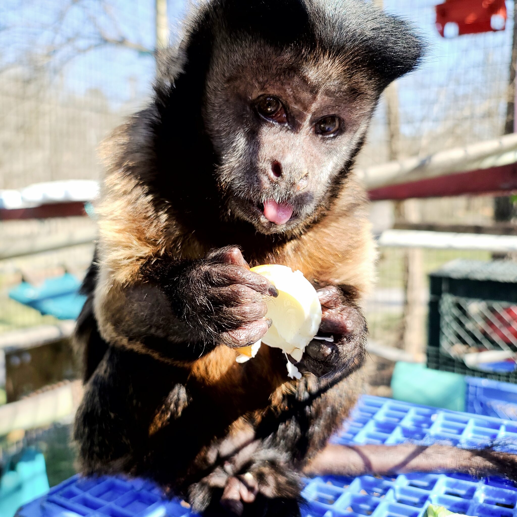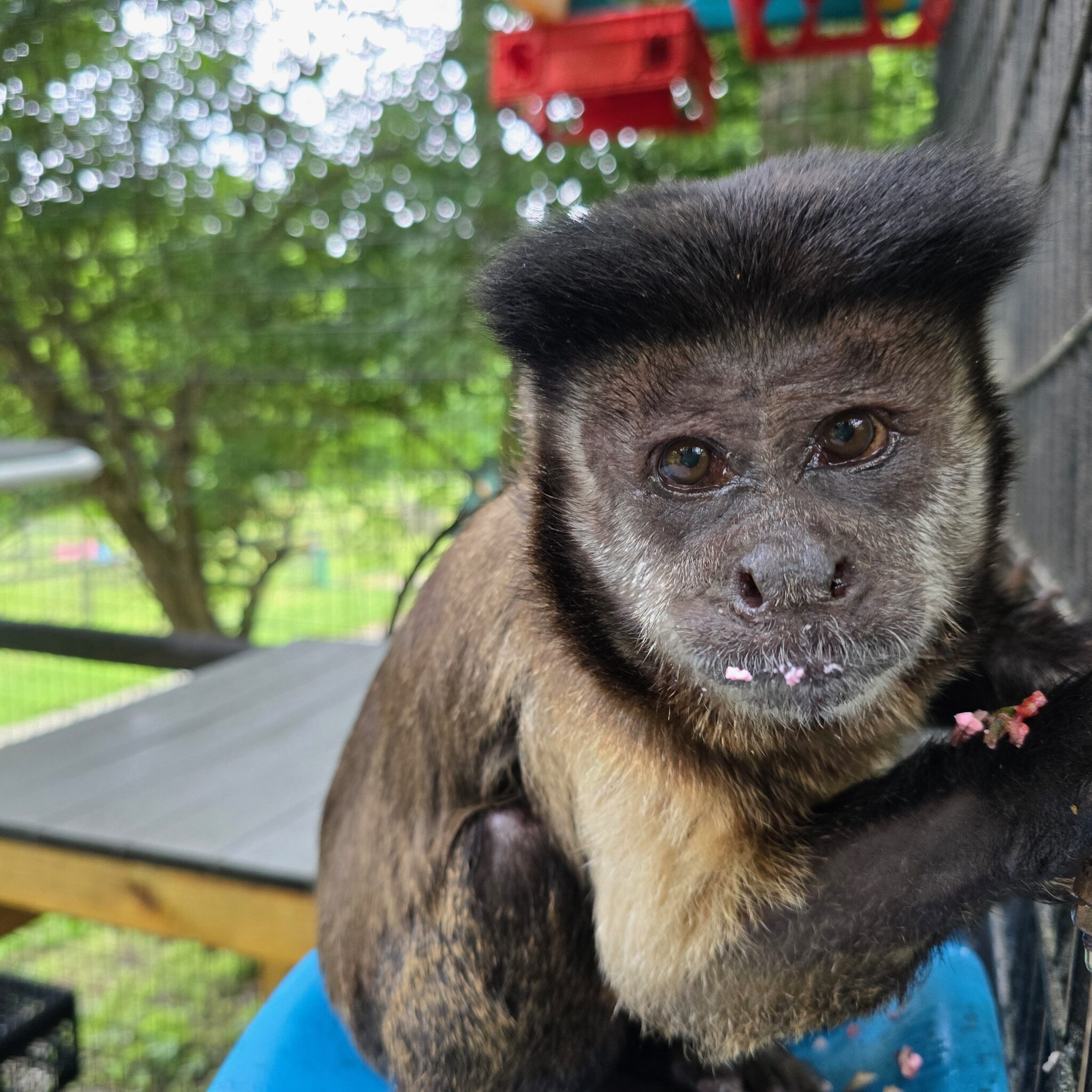 Cysgo is dearly missed by his capuchin friends and caregivers, who feel the quiet space he once filled with his bright energy and gentle presence. The sanctuary isn’t quite the same without his squeals of joy, soulful eyes, or scrunched up, sweet face. He had a warmth that radiated through every interaction with his playful spirit, a generous heart and a sense of peace that brough comfort to those around him. Cysgo will always be remembered as one of the most genuine souls to call the sanctuary home, and the light of his spirit will continue to shine in all who knew and loved him.