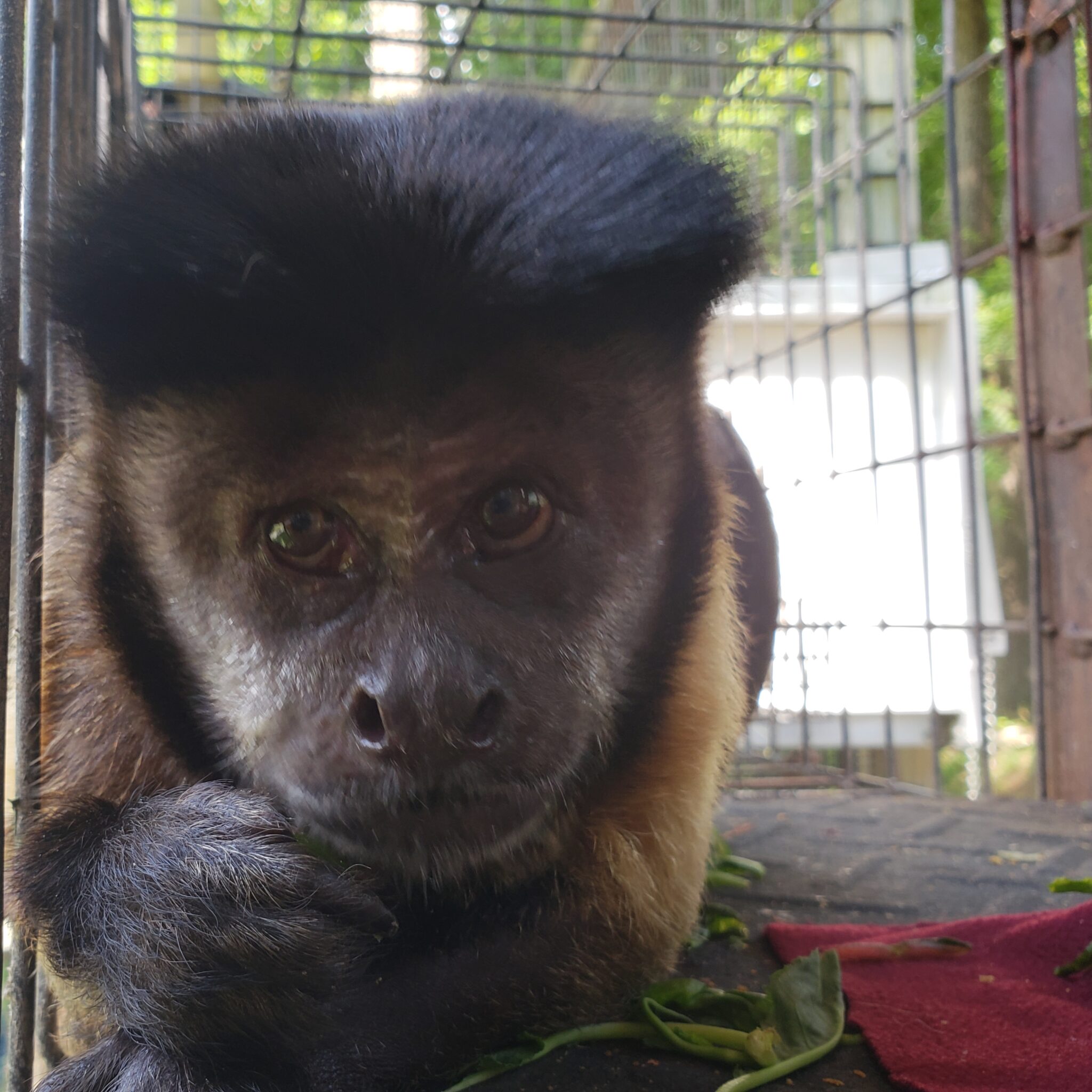 Cysgo capuchin monkey passed away in August 2025 after over 24 years living at the Primate Rescue Center. Cysgo spent his last moments surrounded by his longtime monkey companions and his loving caregivers. We were honored to care for Cysgo and witness his remarkable recovery after spending the first 9 years of his life as a “pet monkey” in a human home – an environment never suited to meet the complex social and emotional needs of a primate.