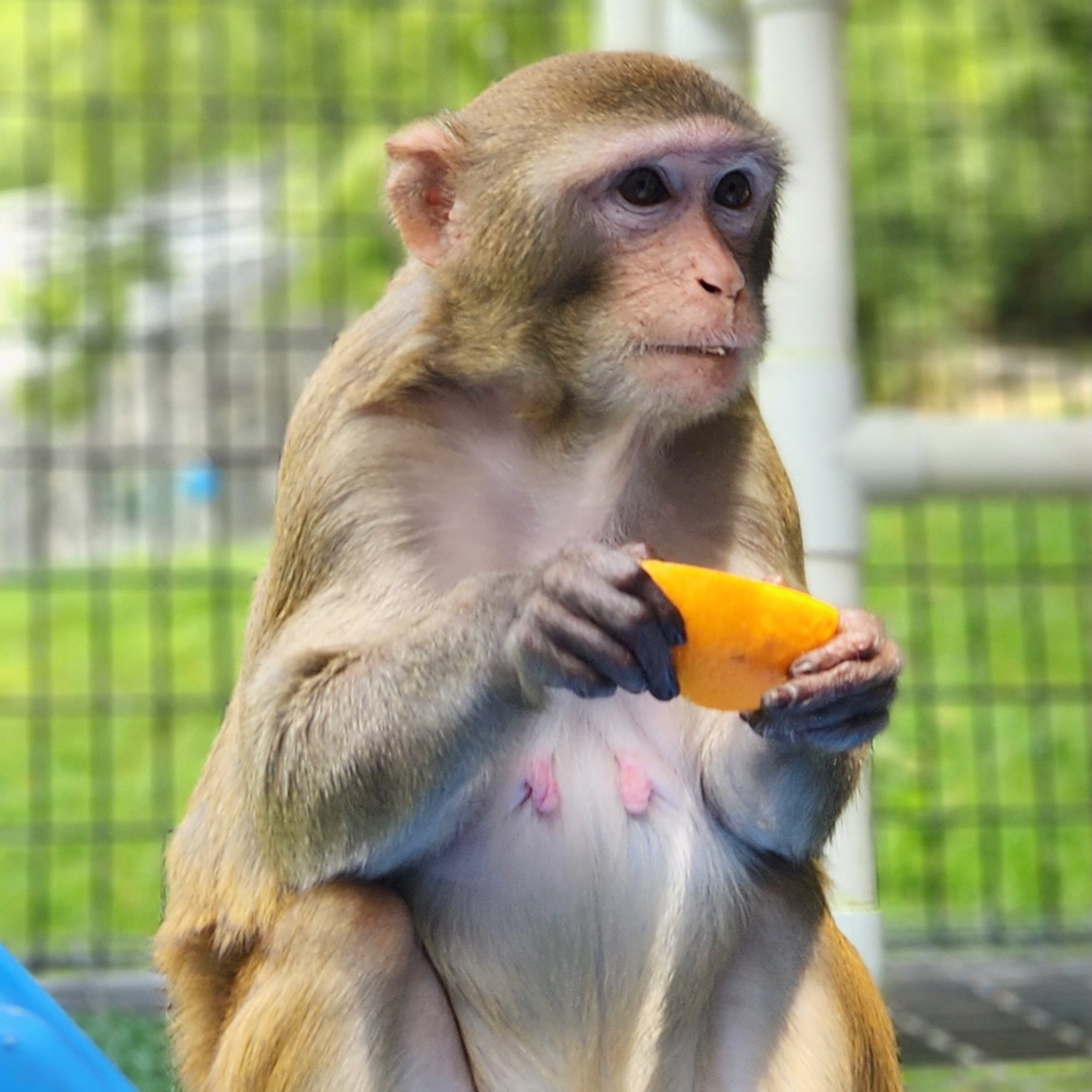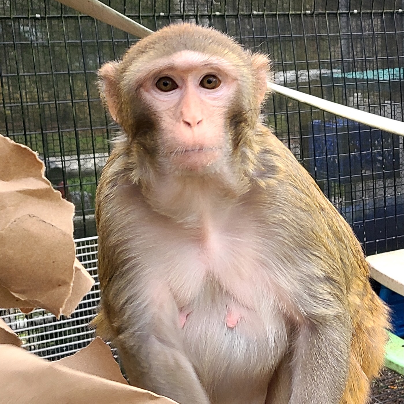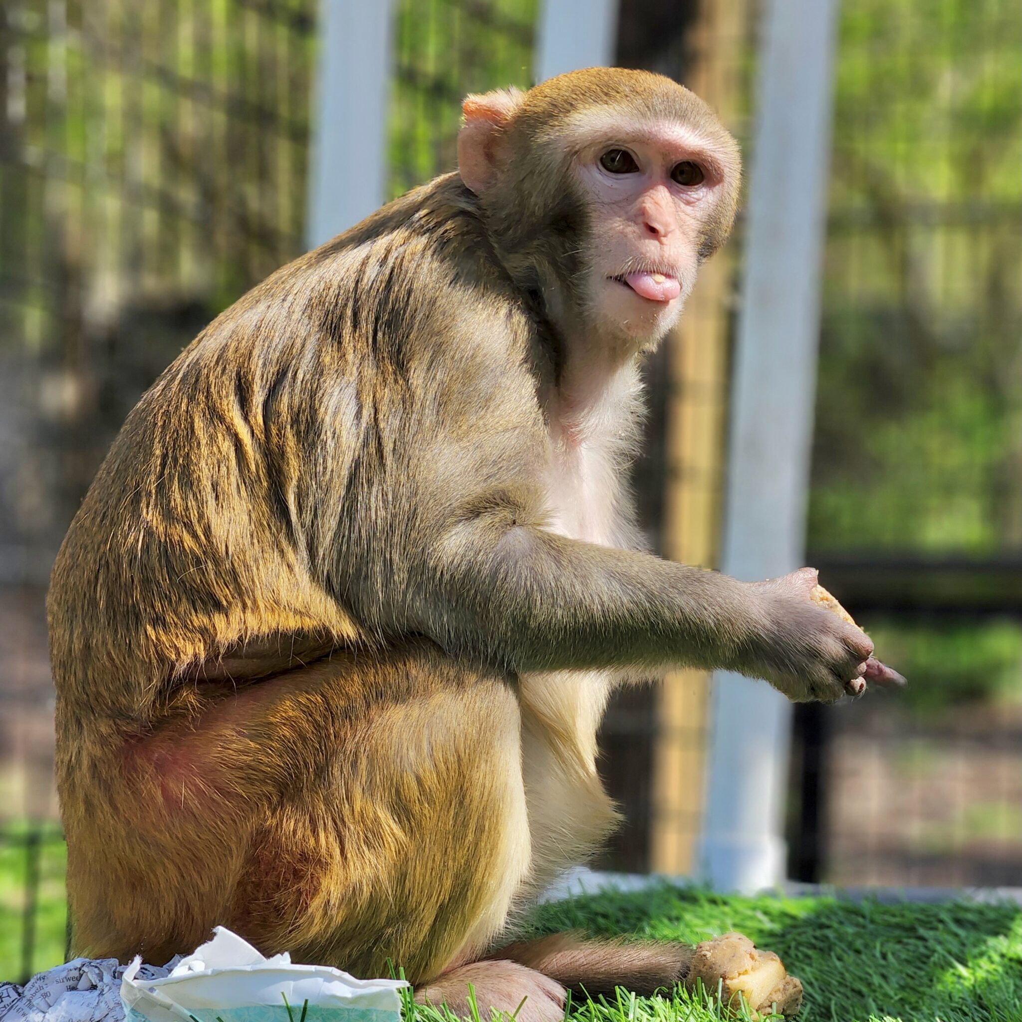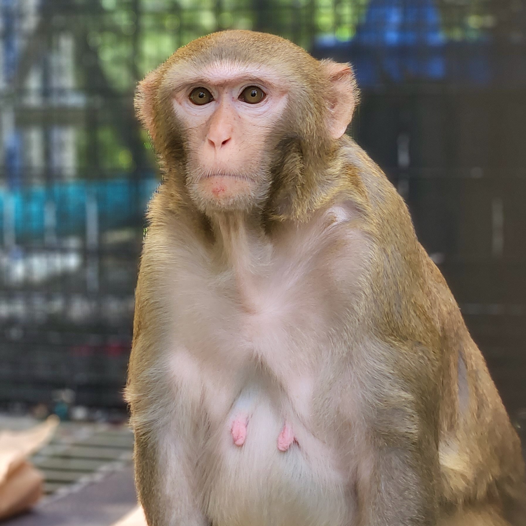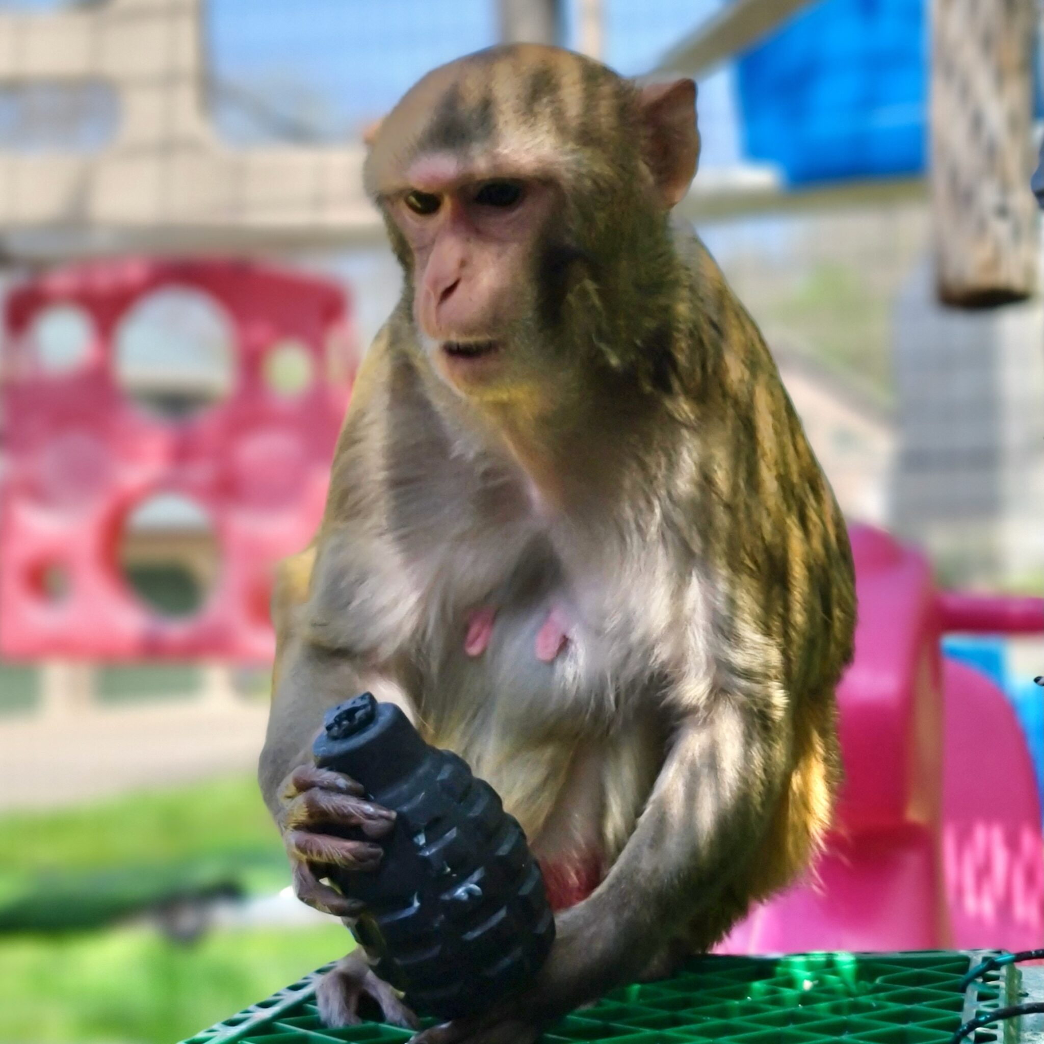 Rainey is a female rhesus macaque who we estimate was born in late 2012. She was confiscated from a private home in Idaho and spent some time at a nearby zoo for medical evaluation before making her way to her forever home at the Primate Rescue Center in February 2014.